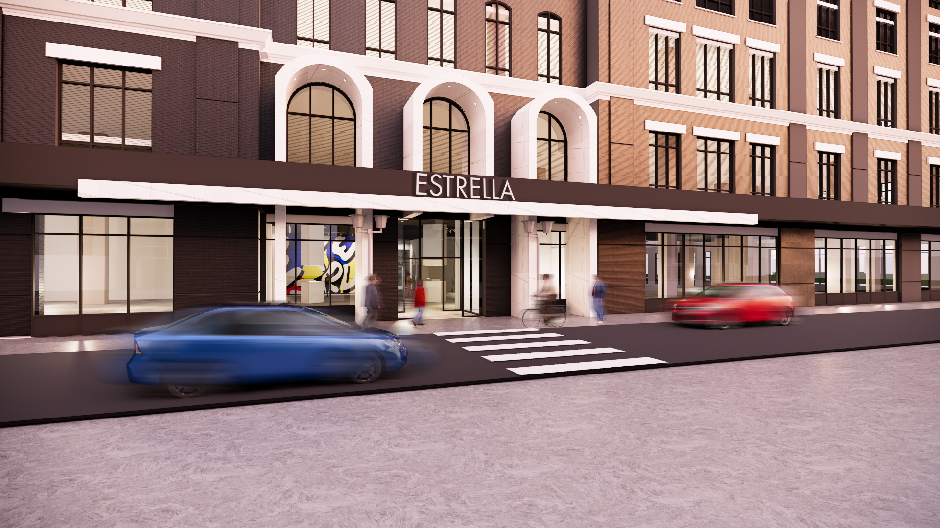 Influenced by the artistic and cultural roots of Columbus, Estrella serves as a hub of activity that invites individuals of all different backgrounds in the city to gather. With a gallery at its core, Estrella ignites creativity and encourages its residents to transform their everyday journeys into an art form. Estrella incorporates sculptural design elements and patterns that fully immerse the user into the space. By focusing on the small details, the Estrella is able to elevate the everyday for its residents.