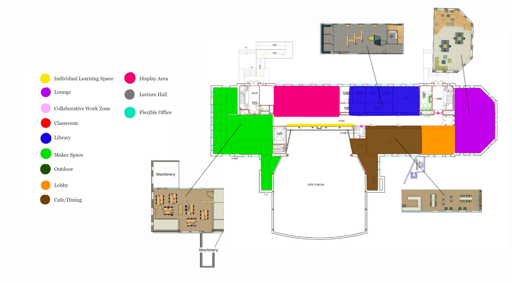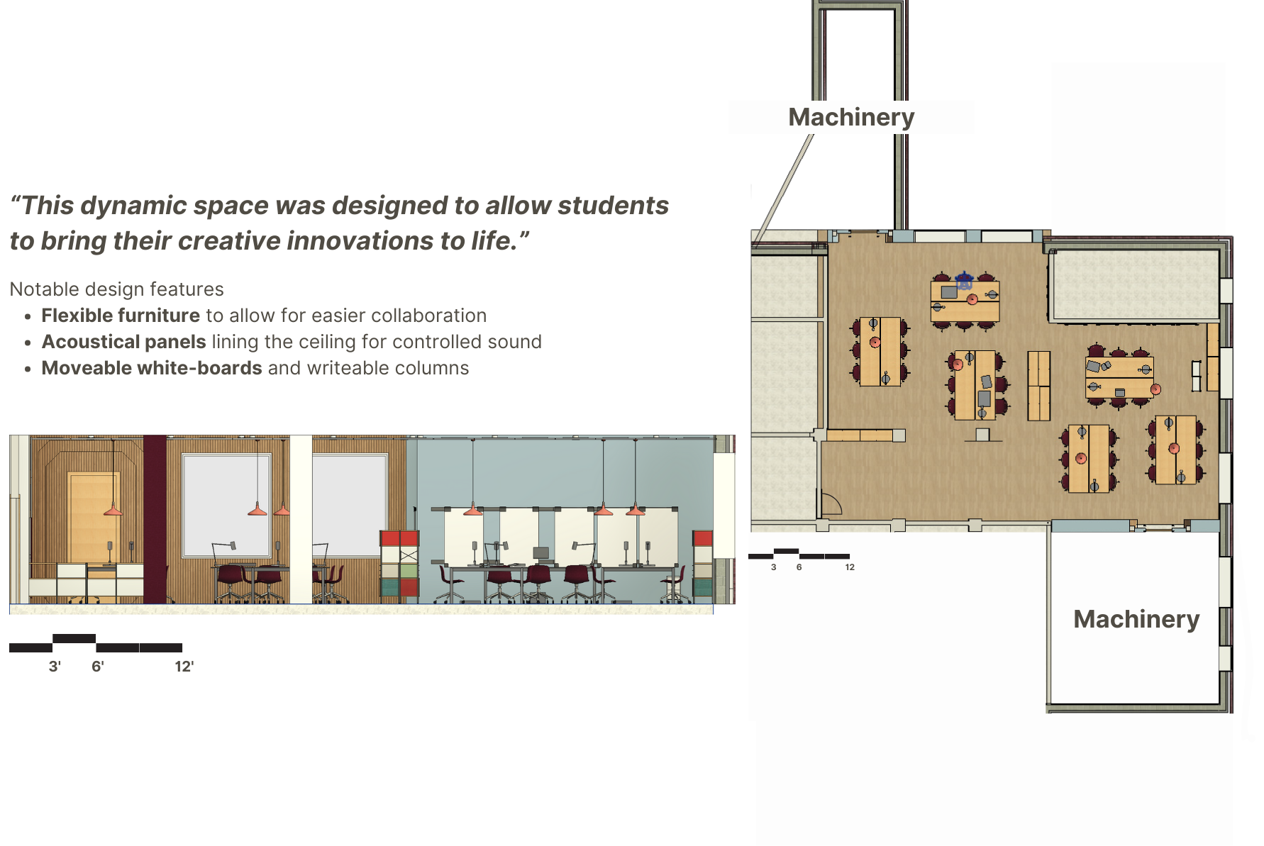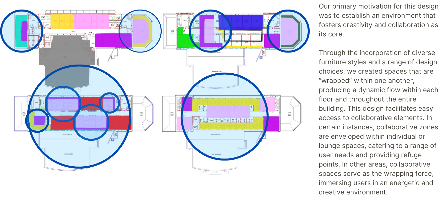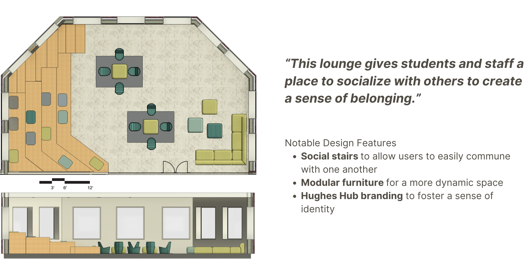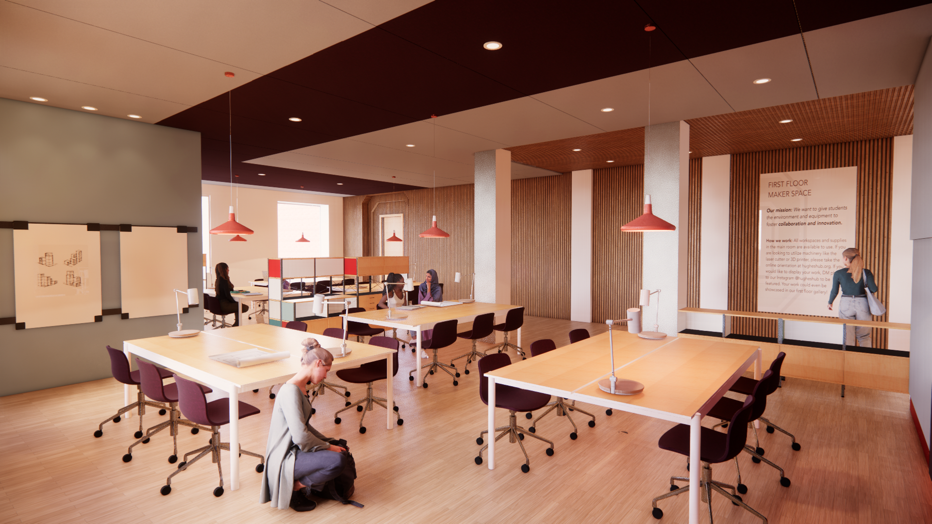 Hughes Hall, at the heart of Ohio State's Art District, is a vibrant hub to wrap its users in collaborative creativity. Designed to connect users through innovative spaces, it offers an immersive environment fostering creativity and inclusivity. It transcends traditional educational standards, catering to diverse needs with classrooms, maker spaces, and third spaces. Revitalizing its identity and circulation, Hughes Hall emerges as a dynamic refuge, purposefully crafted to facilitate connections and celebrate diversity.