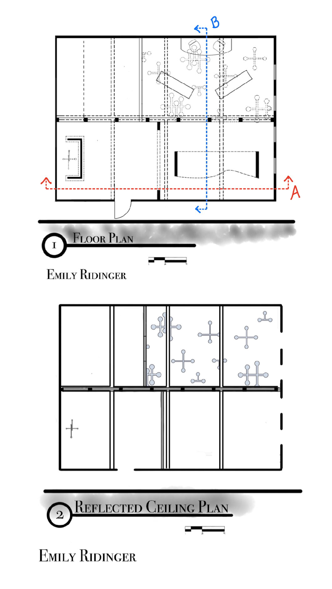 This museum draws inspiration from designers, Charles and Ray Eames to showcase their LCW Chair. When spectators enter the gallery, they are immersed in a world of eclectic aesthetic and mid-century modern design. Using bright colors and geometric forms, the space pays homage to the Eames' home in California as well as forms found within the LCW chair. Ray's patterns and textiles become main focal points of the space, displayed in the lighting and furniture.